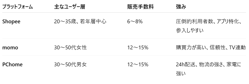 本記事では、それぞれの特徴・ユーザー層・手数料をわかりやすく比較し、**「日本企業が台湾ECへ進出する際の参考」**としてまとめた。