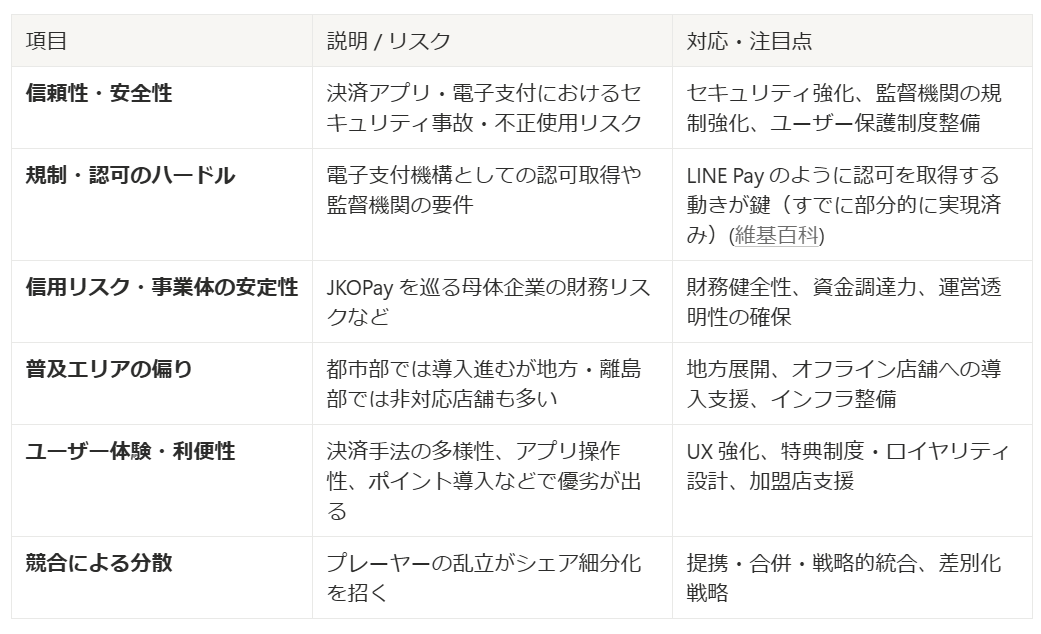 - 今後は、単純な「決済アプリ競争」から、「決済ネットワーク連携」「統合インフラ」「地域包摂力」「信頼性競争」へと戦いの舞台が変わっていく可能性が高いでしょう。